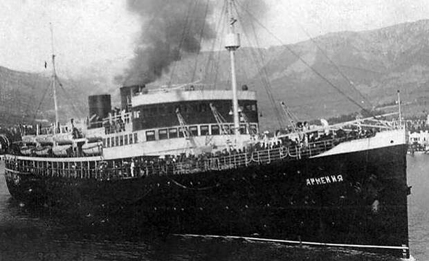 Во время Великой Отечественной войны в августе 1941 года «Армения» была переоборудована в санитарно-транспортное судно. В ходе обороны Одессы «Армения» совершила 15 рейсов в осажденный город, откуда на борту этого судна были вывезены более 16 тысяч человек. Последним рейсом «Армении» стал поход из Севастополя в Туапсе в ноябре 1941 года. 6 ноября, приняв на борт раненых, практически весь медицинский персонал Черноморского флота и гражданских лиц, «Армения» покинула Севастополь. Ночью судно прибыло в Ялту. Капитану "Армении" запрещалось совершать переход в Туапсе в светлое время суток. Но военная обстановка диктовала иное. Порт Ялты не имел прикрытия для защиты от налетов немецкой авиации, а на ближних подступах к городу уже находились немецкие войска. И выбора практически не оставалось... В 8 часов утра 7 ноября «Армения» покинула Ялту и взяла курс на Туапсе. В 11 ч 25 минут судно подверглось атаке немецкого торпедоносца He-111 и затонуло менее чем через 5 минут после попадания торпеды в носовую часть судно. Вместе с «Арменией» погибли от 4000 до 7500 человек, а спастись удалось лишь восьмерым.«Кап Аркона»