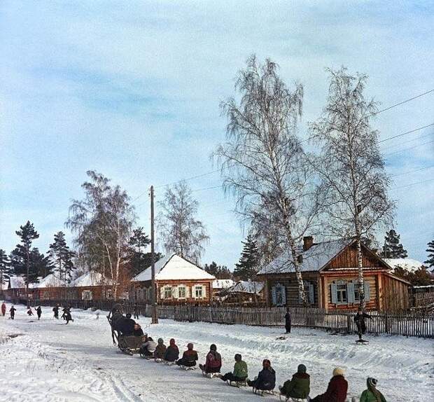 Воскресные массовые катания на салазках, 1962 год, Новосибирская обл.