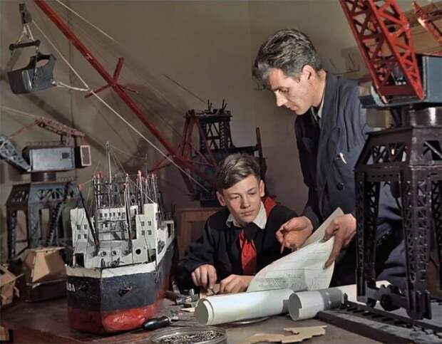 Занятия технического кружка. Руководитель В. Р. Главко и ученик Валерий Некрасов